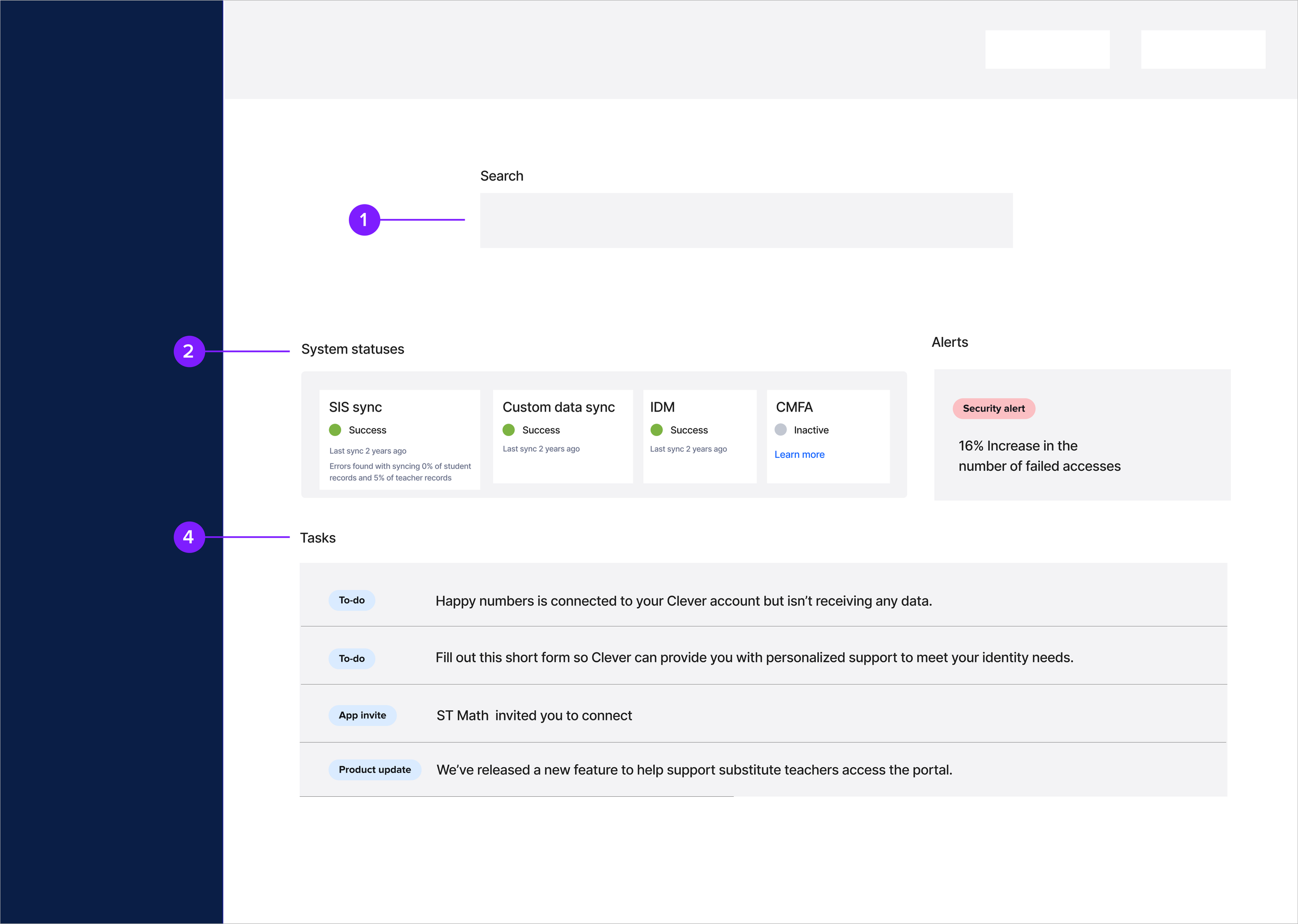 This shift positioned Clever as a cybersecurity provider, yet the Dashboard, the primary surface used by district IT admins, still looked and behaved like a rostering tool with security features bolted on. The experience didn’t reflect the company’s new strategic focus and undermined trust, discoverability, and adoption of security capabilities.