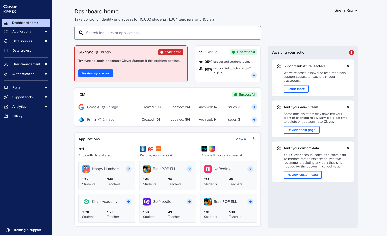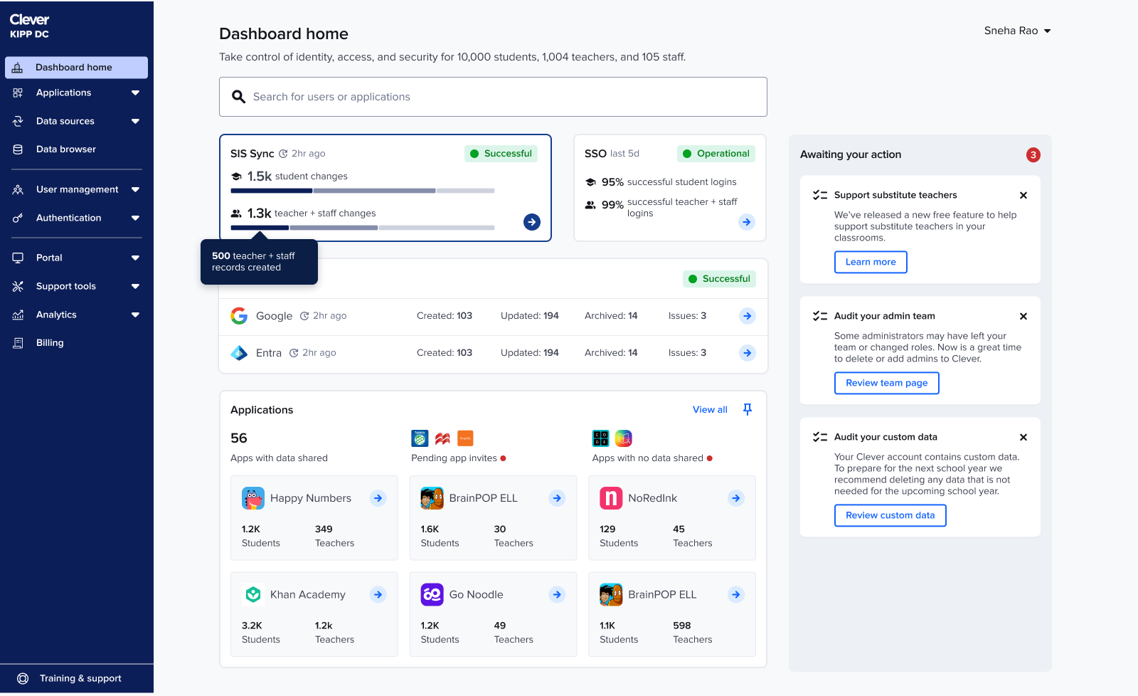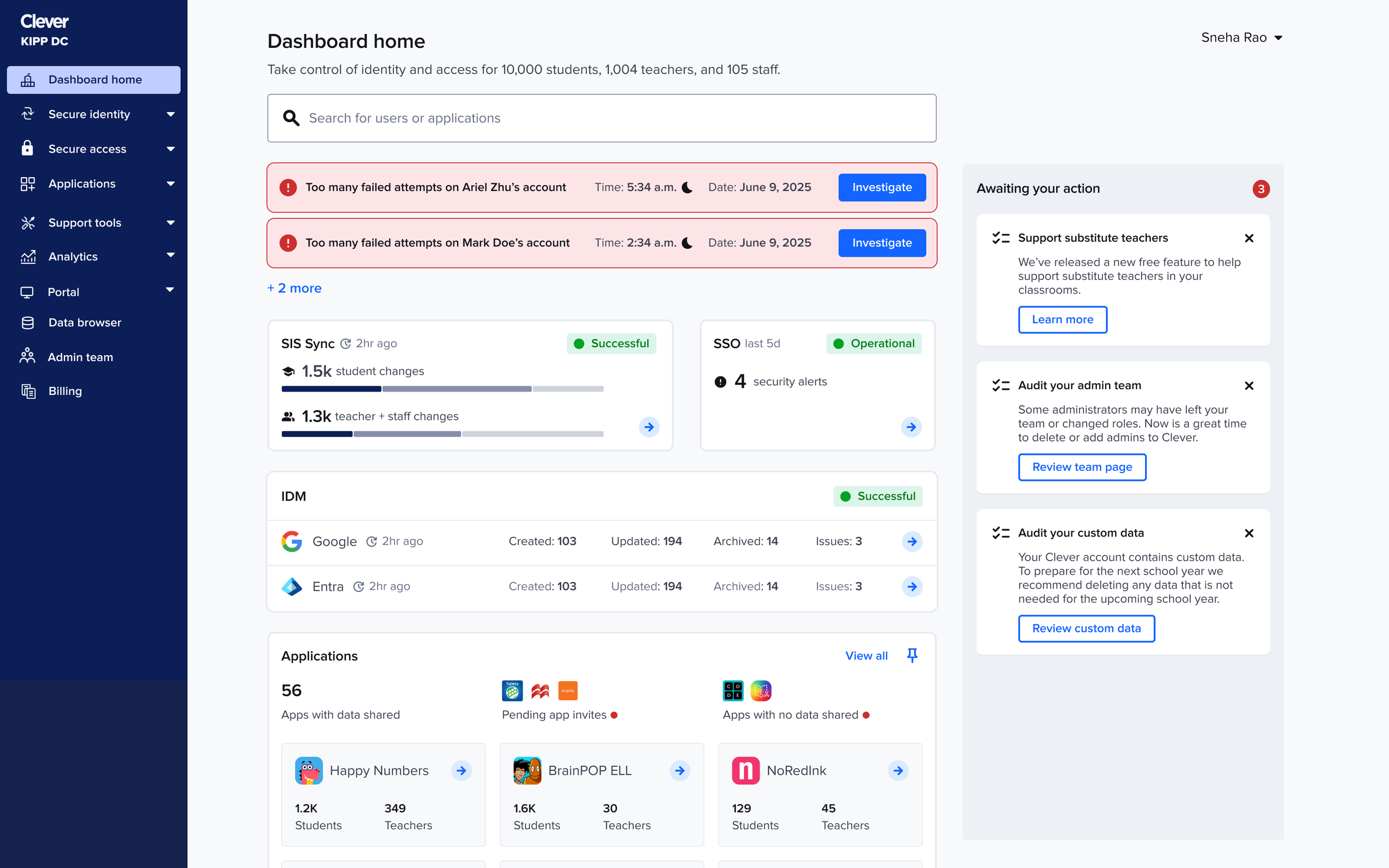 After high-profile district breaches (like the LAUSD ransomware attack affecting thousands of student records), districts were urgently reassessing their security posture. Administrators consistently told us they felt vulnerable and under-equipped. This raised a core question: How might Clever help IT admins feel more in control of their security posture before an incident happens?