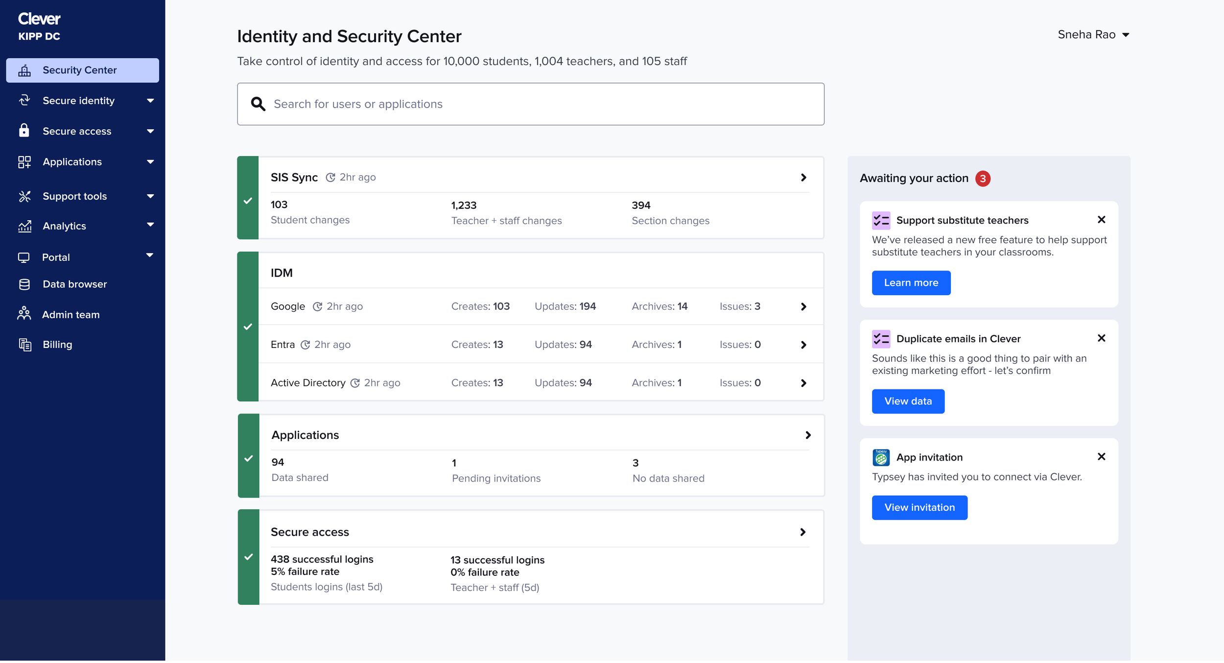 These incidents raised an important question: How might Clever help district administrators feel more in control of their security posture before an incident happens?